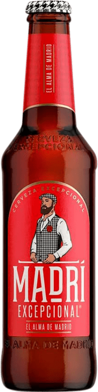 24 Einheiten Box. Bier. Madrí Excepcional. Lager. Spanien. Drittelliterflasche. 33 cl..
