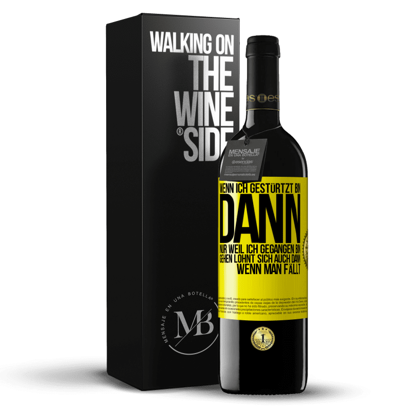 Rotwein. I.G.P. Vino de la Tierra de Castilla y León. Ernte 2016. Spanien. RED Ausgabe MBE Reserve «Wenn ich gestürtzt bin, dann nur, weil ich gegangen bin. Gehen lohnt sich auch dann, wenn man fällt». Gelbes Etikett. Anpassbares Etikett. Reserve 12 Monate. Tempranillo. Mensaje en una Botella by Esencias..