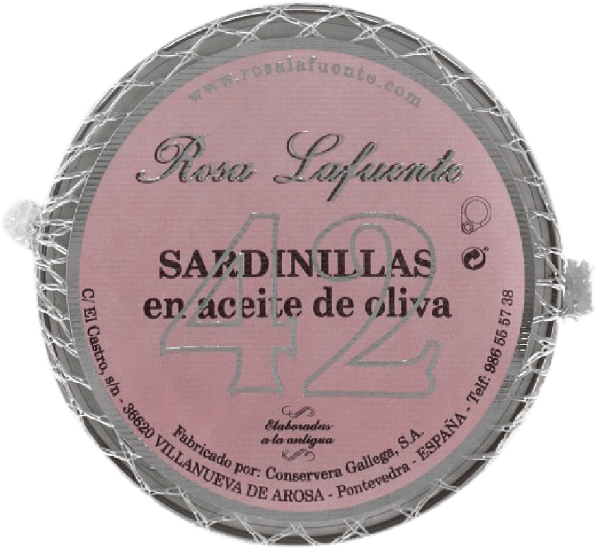Fish Preserves Conservera Gallega Rosa Lafuente Sardinillas en Aceite de Oliva 42 Pieces. Data sheet.