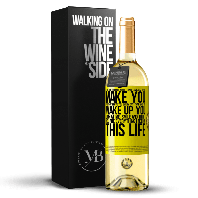 White Wine. D.O. Rueda. Harvest 2025. Spain. WHITE Edition «I will not promise you eternal love, just try to make you feel that I love you every day, that when you wake up you look at». Yellow Label. Customizable label. Young wine. Verdejo. Mensaje en una Botella by Esencias..