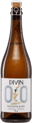 Vin Mousseux Blanc. Divin NoLow. Seco — Sec. Sparkling — Mousseux. I.G.P. Val de Loire. Loire. France. Sauvignon. 75 cl. 0.0 Zéro Zéro. Sans Alcool..
